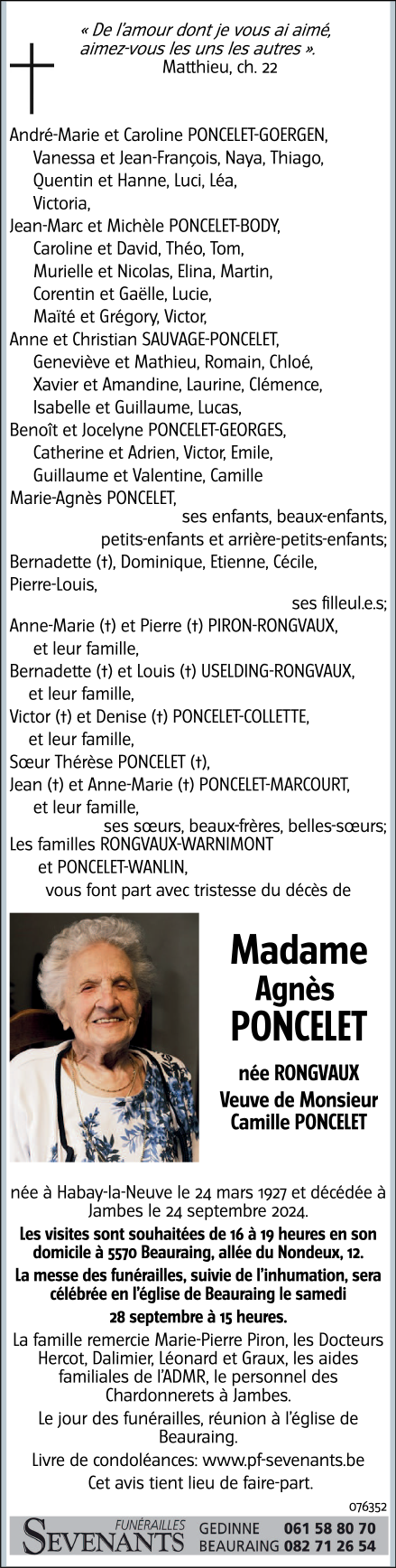 Veuve de Monsieur Camille PONCELET