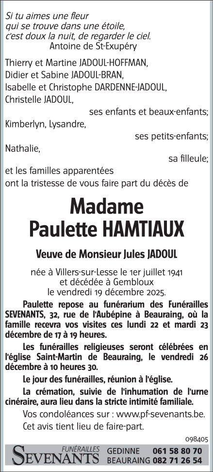 Madame Paulette HAMTIAUX
