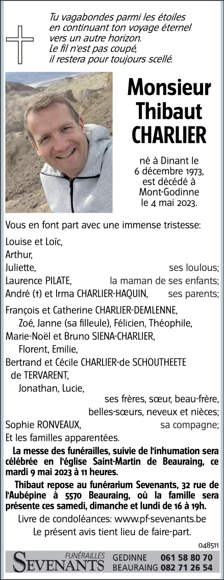 Décédé à Mont-Godinne (5530) le jeudi 4 mai 2023 à l'âge de 49 ans