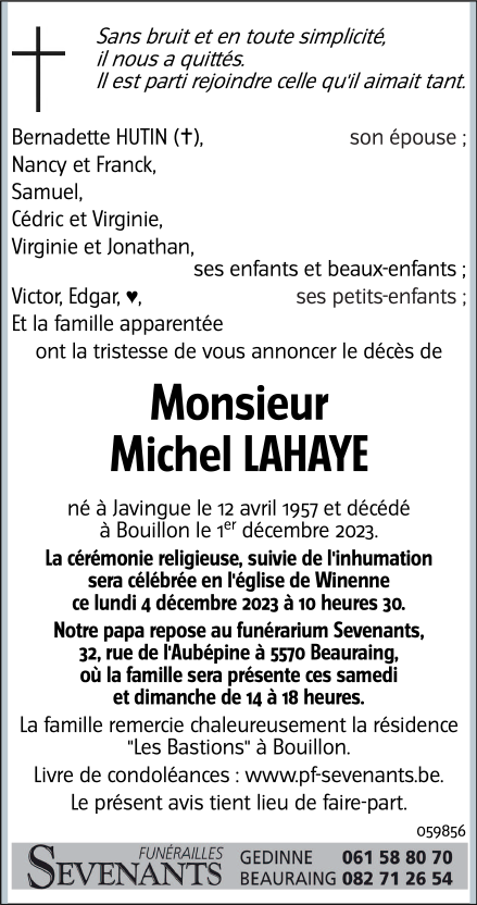 Décédé à Bouillon (5370) le vendredi 1 décembre 2023 à l'âge de 66 ans